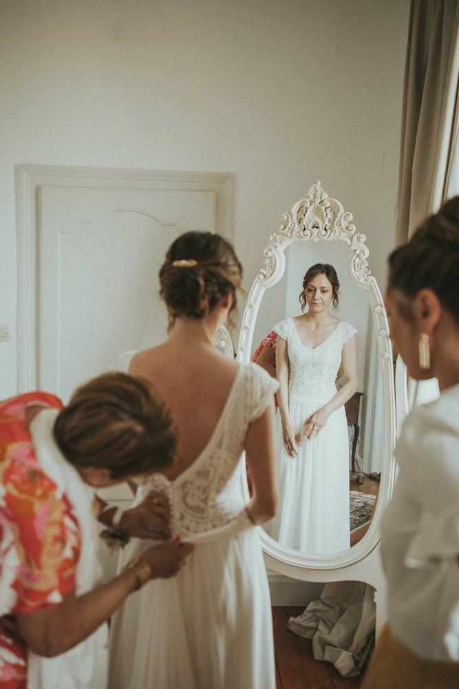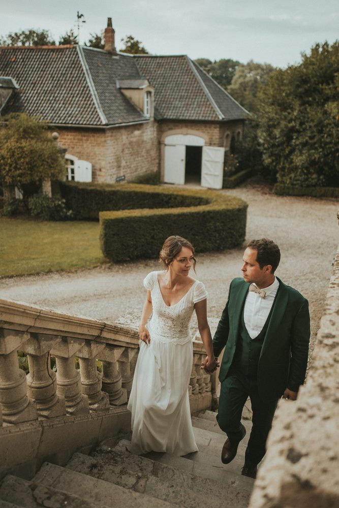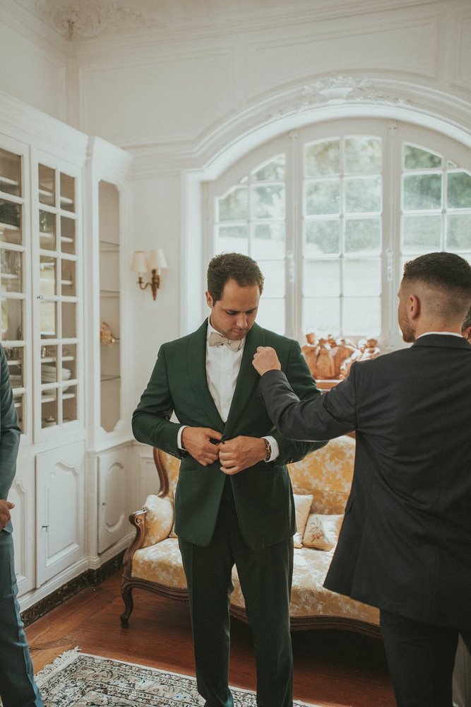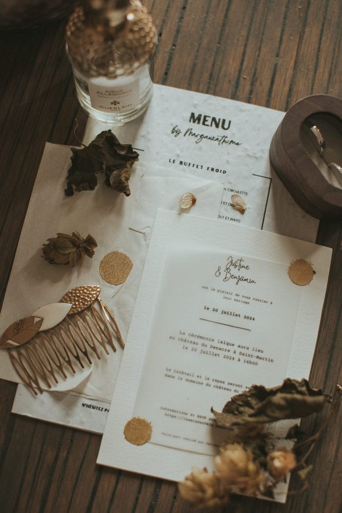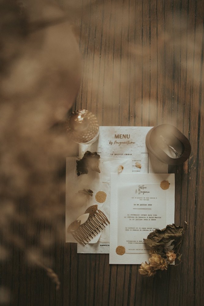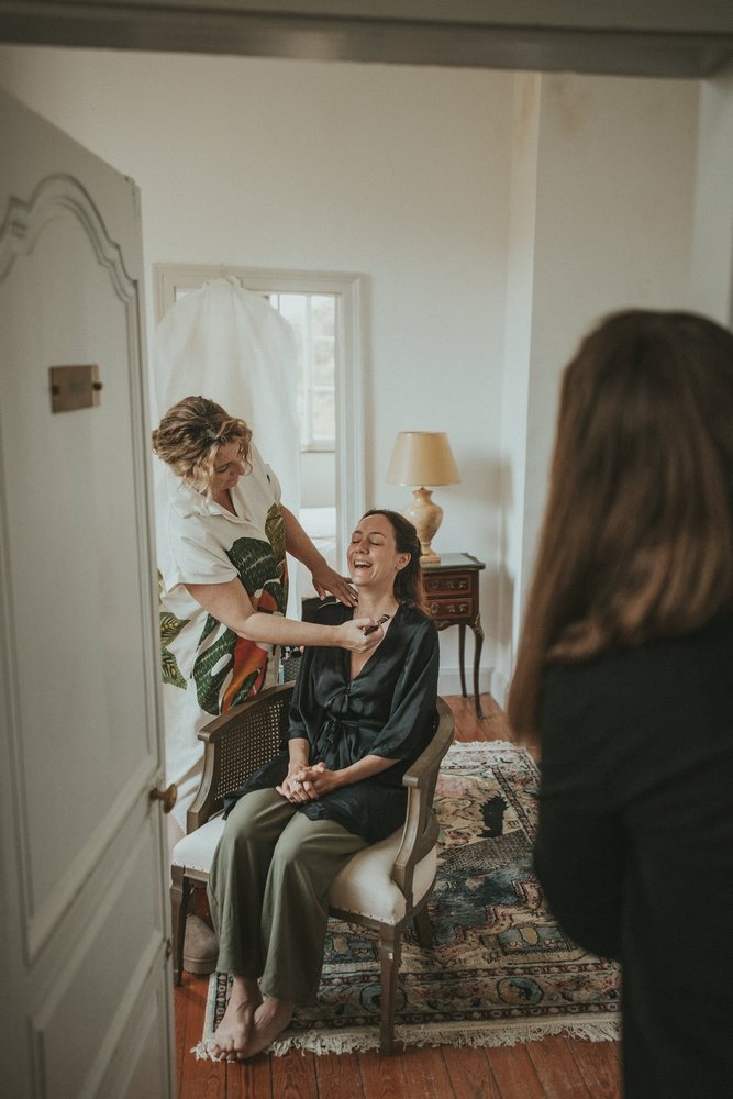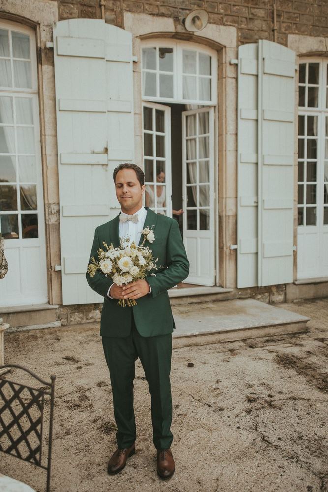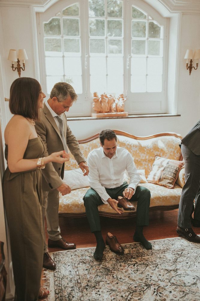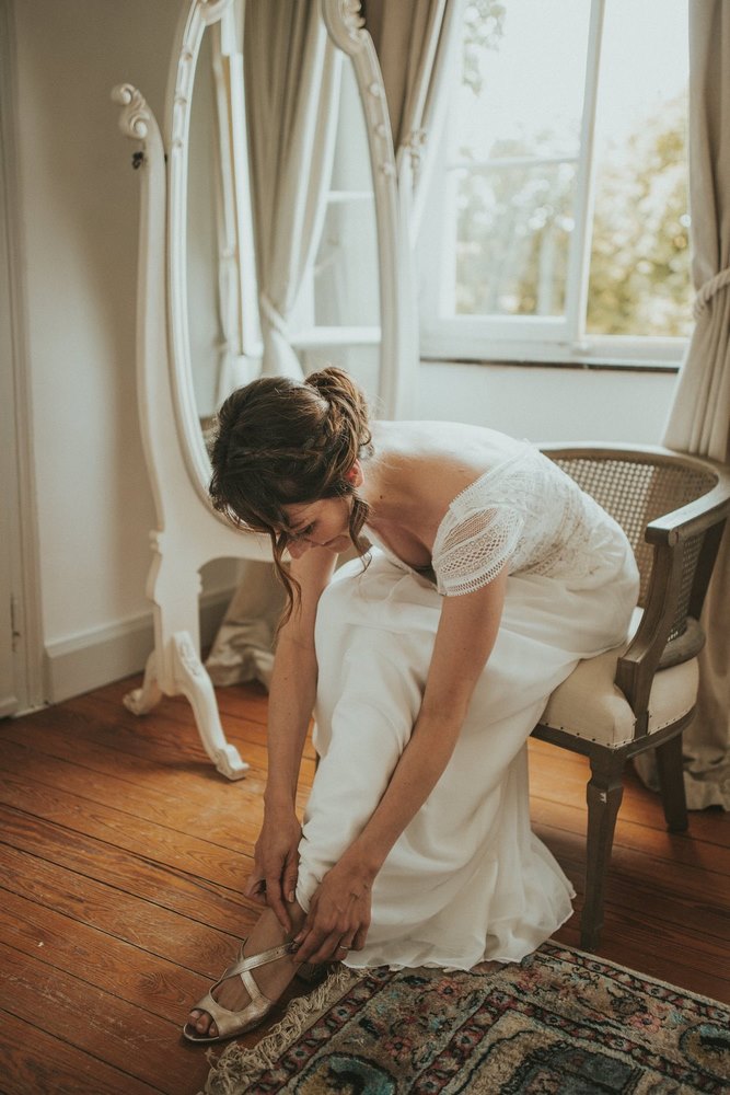 Dès les premières heures, le Château du Denacre se réveille doucement. Julot et Ben commencent à se préparer chacun de leur côté, entourés de leurs proches. De mon côté, j’en profite pour capturer tous les petits détails : les accessoires, les bijoux, les chaussures… ce qu’on appelle les Lay Flat. J’adore ce moment où tout prend forme.