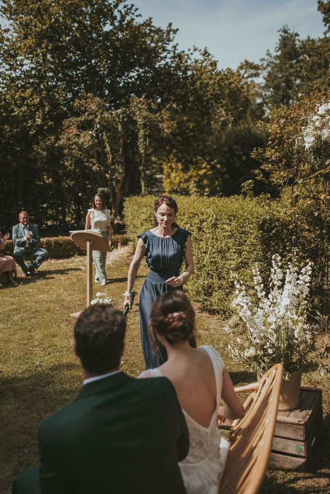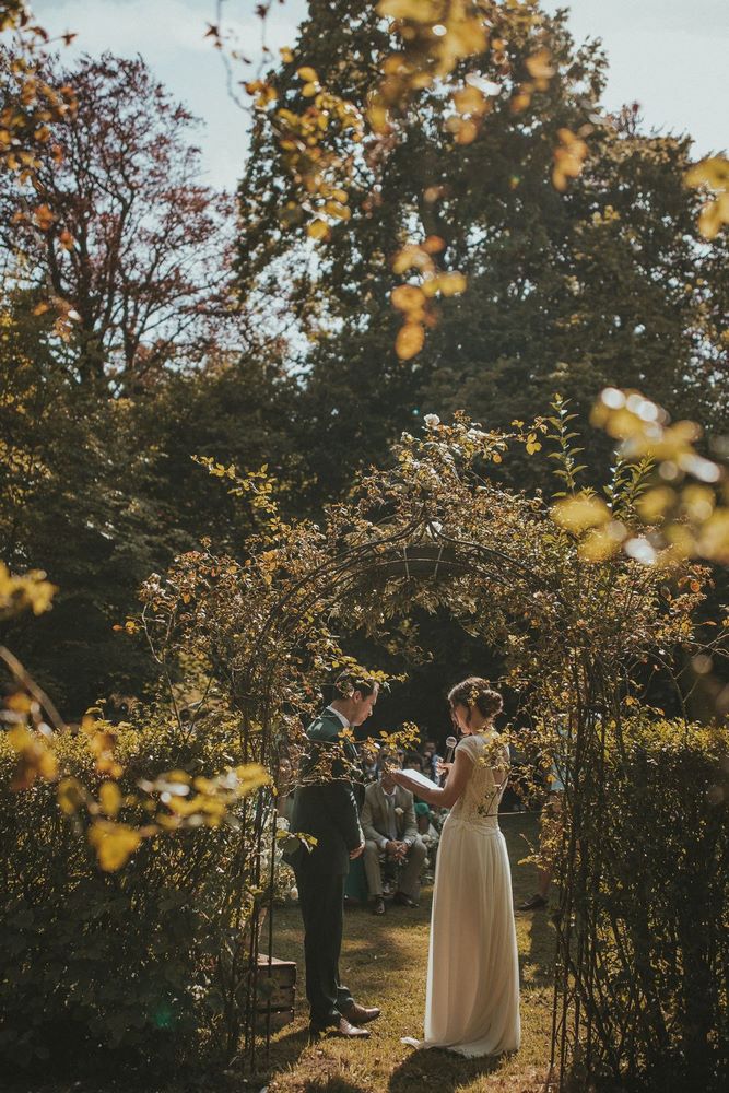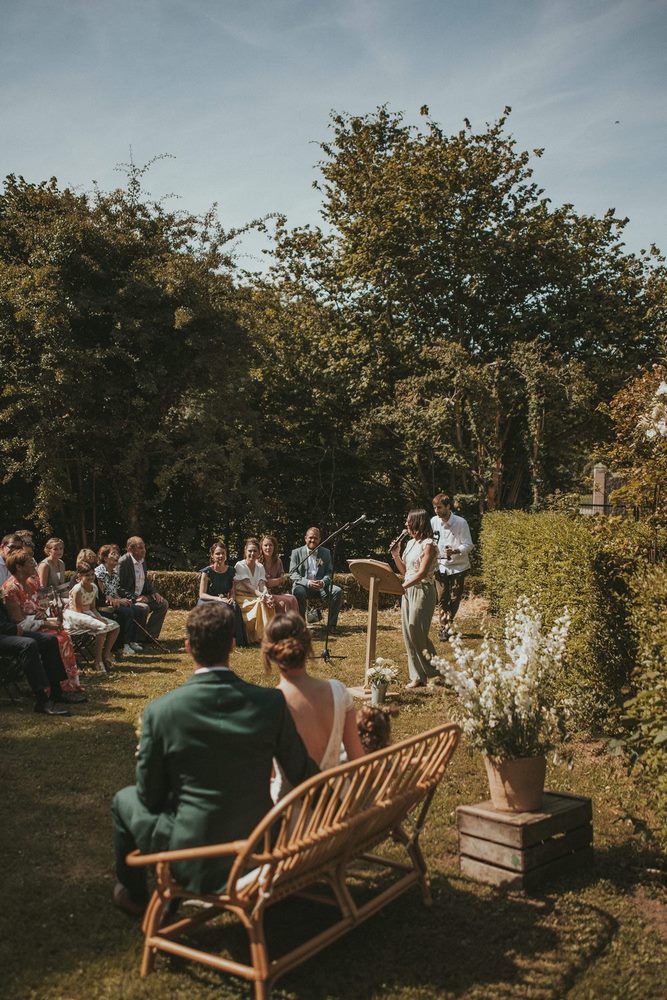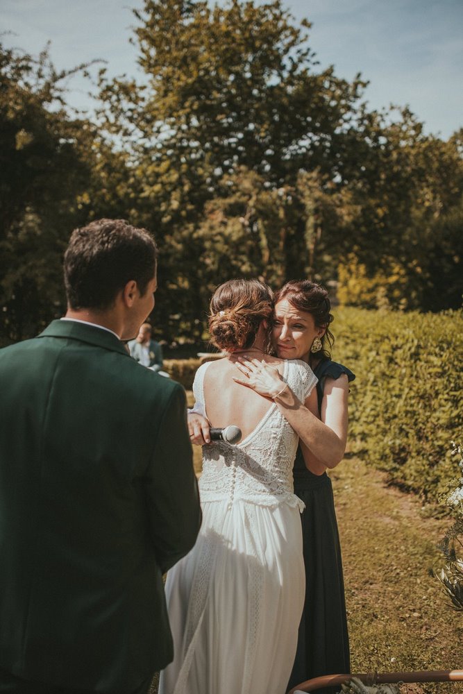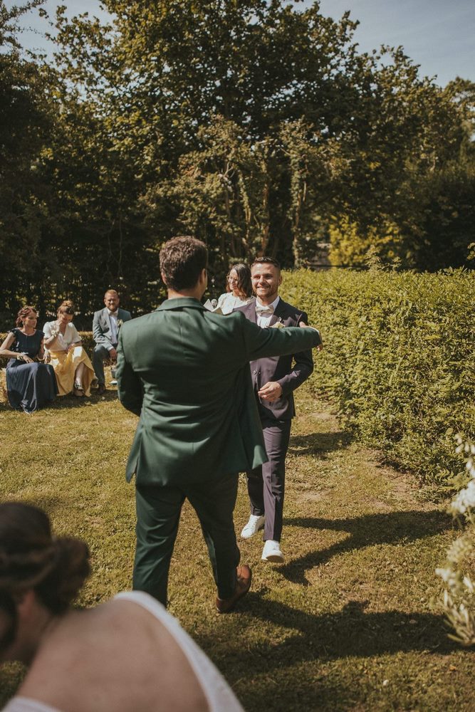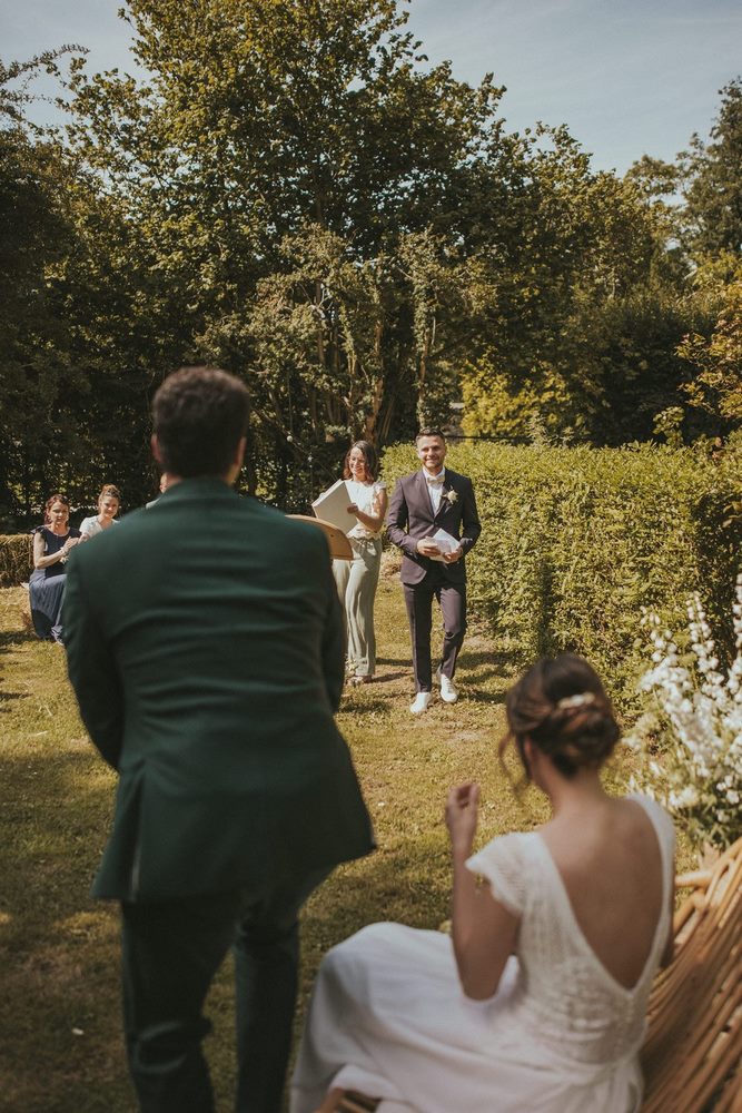 Après ce moment plein d’émotion pendant la découverte, il était temps de célébrer leur amour comme il se doit. Direction le parc du Château du Denacre pour une cérémonie laïque pleine de charme et de sincérité.