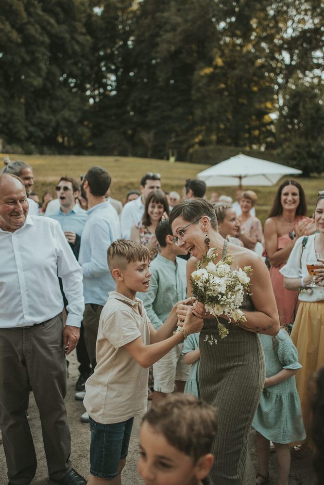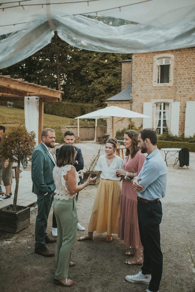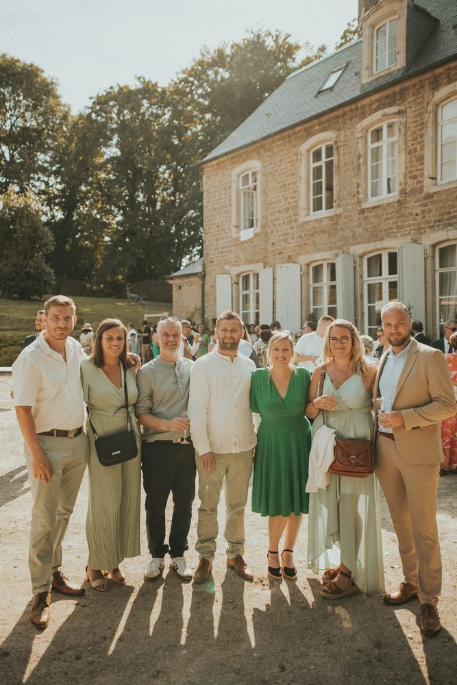 Une fois la cérémonie terminée, tout le monde se dirige tranquillement vers la terrasse du Château du Denacre. Le soleil est au rendez-vous (et franchement, on ne va pas s’en plaindre !), les rires fusent, les discussions vont bon train. L’ambiance est détendue, joyeuse, pleine de chaleur.